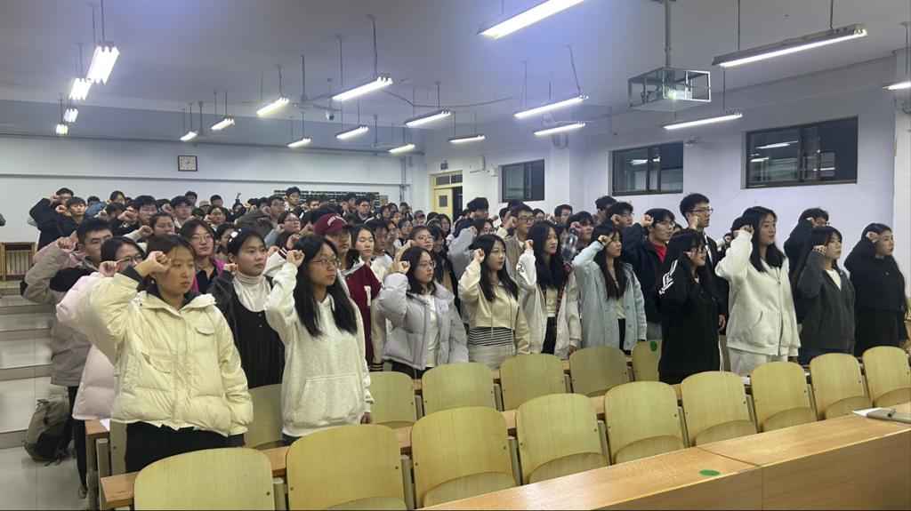 会议尾声,学院党委书记赵庆福作总结讲话。他充分肯定了一年来学生会在服务同学、联结师生、助力学院建设等方面的扎实成绩,赞扬全体成员的担当奉献精神,强调其作为师生沟通桥梁的重要作用。赵书记提出“责任、协作、创新”要求,鼓励大家以更强担当、更密协作、更活思维,打造有温度、有活力的学生组织;全体成员在庄重的宣誓环节许下恪尽职守的承诺。