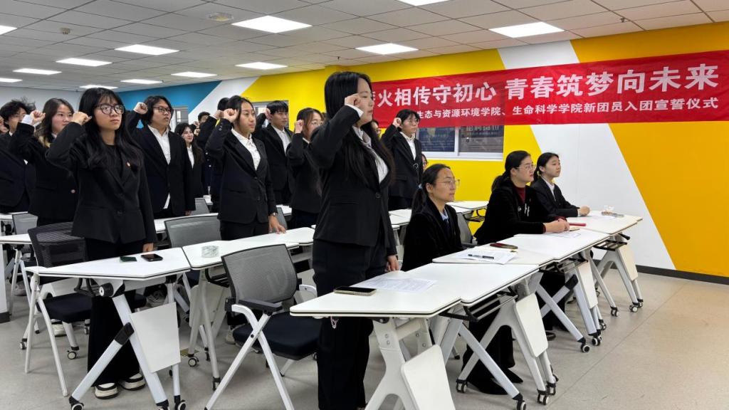 12月16日,“薪火相传守初心,青春筑梦向未来”新团员入团宣誓仪式在大学生赋能中心助航室庄严举行。本次仪式由BB电子游戏官网与生态与资源环境学院联合举办,两院新团员共同参与。BB电子游戏官网团委书记孙珍辉、生态与资源环境学院团委书记李洋洋出席仪式。