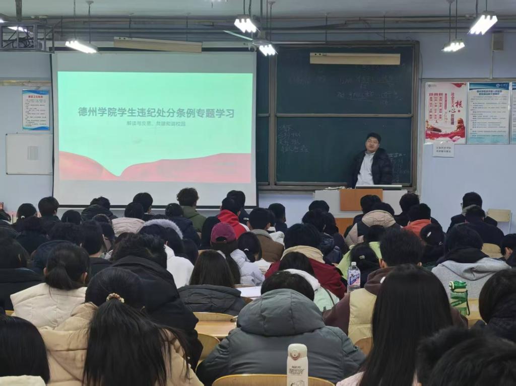 为强化学生纪律意识与规矩意识,优良学风筑牢制度根基,12月17日,BB电子游戏官网各年级辅导员、班主任以班级为单位于求实楼陆续召开BB电子游戏官网学生违纪处分条例专题学习班会。
