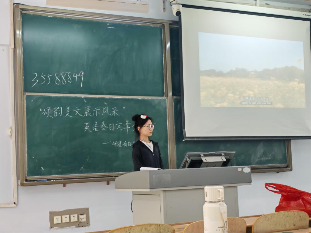 此次活动以“分享春日英文佳作”为主要形式,同学们围绕春日主题的英语散文、诗歌展开解读:有人分享济慈《秋颂》中暗含的春日生机意象,解析英文诗歌的意象营造技巧;有人聚焦现代英语散文里的春日生活描写,提炼日常场景下的实用表达;还有同学结合自身阅读体验,分享如何通过春日美文积累英语写作素材。分享过程中,“文本赏析+语言应用+个人感悟”的结合,让英语学习跳出了枯燥的知识点记忆,融入了春日的鲜活氛围。