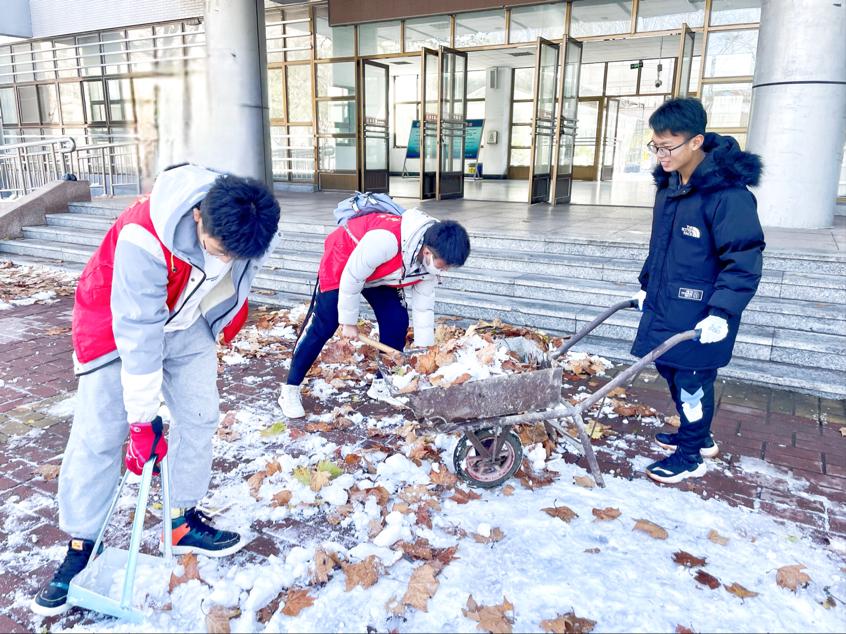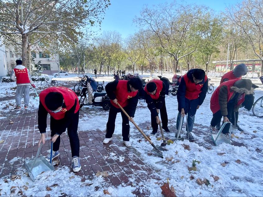 11月8日,为保障同学们的出行安全,保证道路畅通,消除安全隐患,我院举办了“除冰扫雪助同学,志愿服务暖人心”活动。