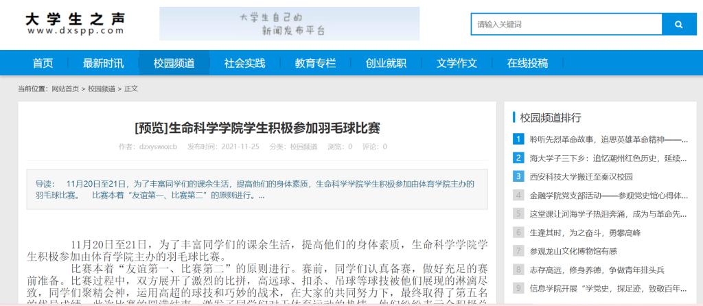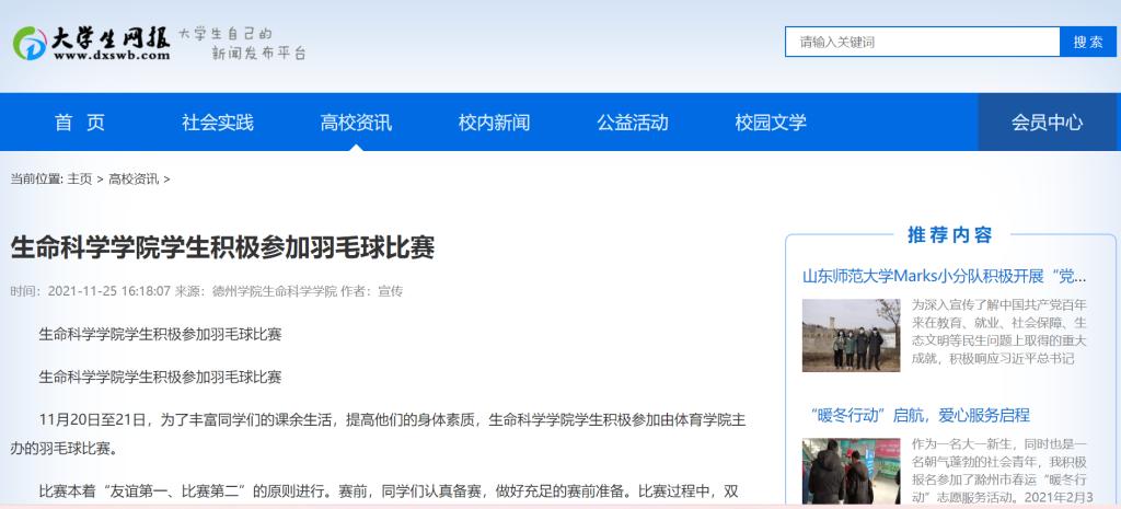 11月20日至21日,为了丰富同学们的课余生活,提高他们的身体素质,BB电子游戏官网学生积极参加由体育学院主办的羽毛球比赛。