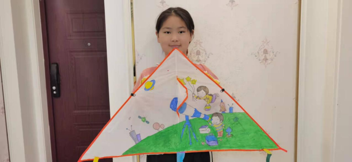 活动前,“熠熠生科”志愿服务团队提前录制好教学视频,利用微信建立活动群,并让大家提前到社区领取活动所需的物资。视频中,志愿服务团队为青少年介绍了风筝的起源,详细讲解了春日色彩中的动植物特性,指导他们涂抹胶水、调试颜料,并运用颜料盒和纸笔,在自己的风筝上绘制喜欢的图案,进一步提升了他们感受美、表现美、鉴赏美和创造美的能力。活动结束后,大家纷纷在微信群内展示制作精美的风筝照片。