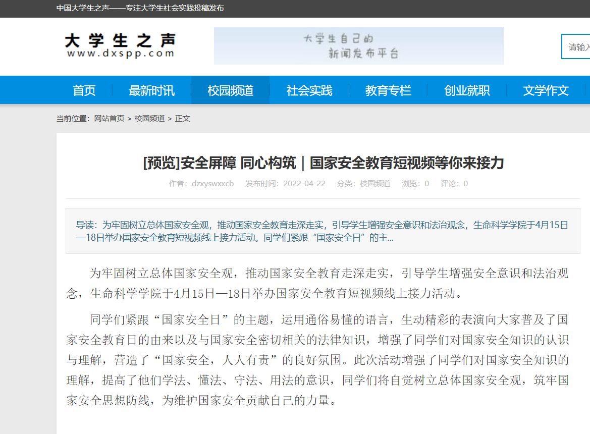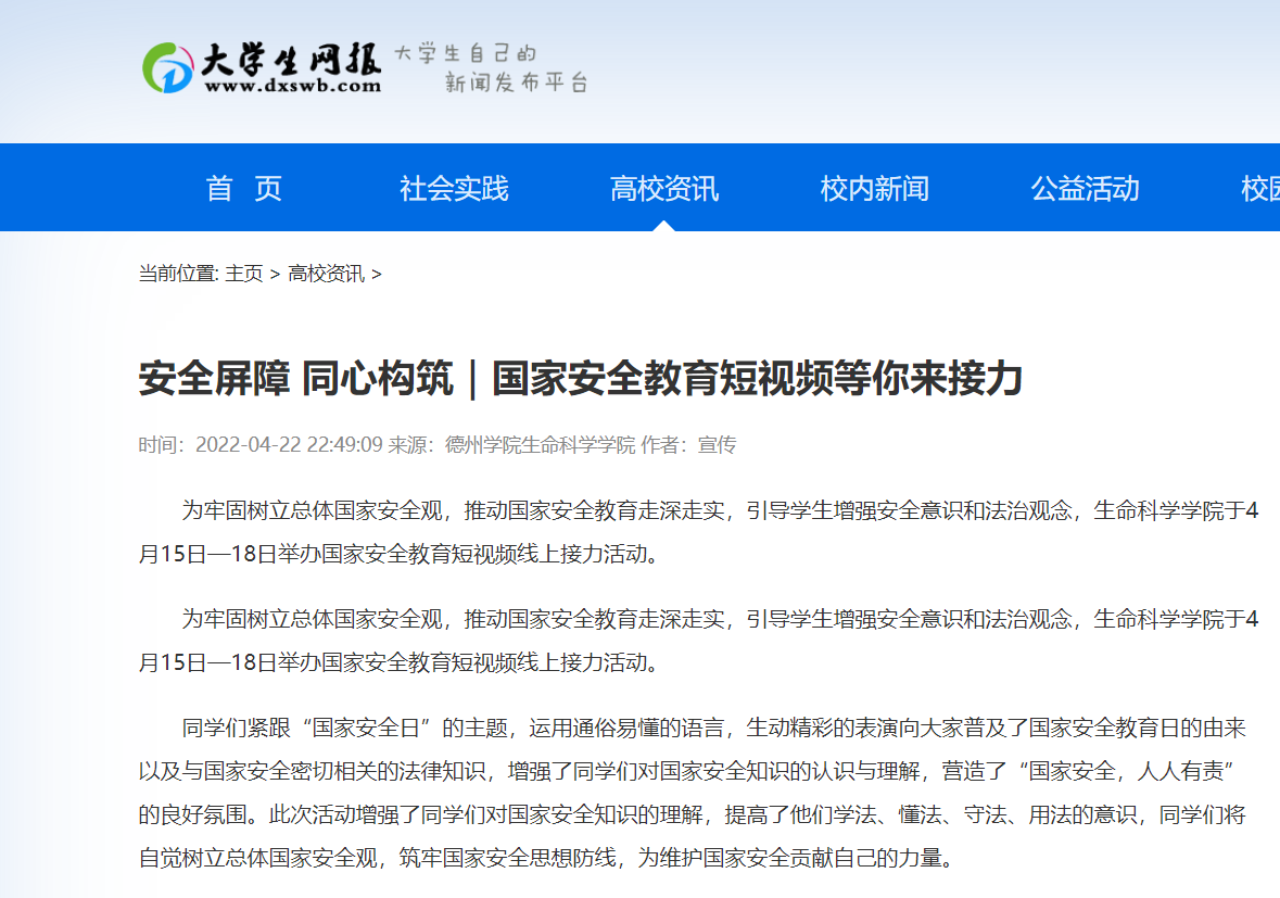 为牢固树立总体国家安全观,推动国家安全教育走深走实,引导学生增强安全意识和法治观念,BB电子游戏官网于4月15日—18日举办国家安全教育短视频线上接力活动。