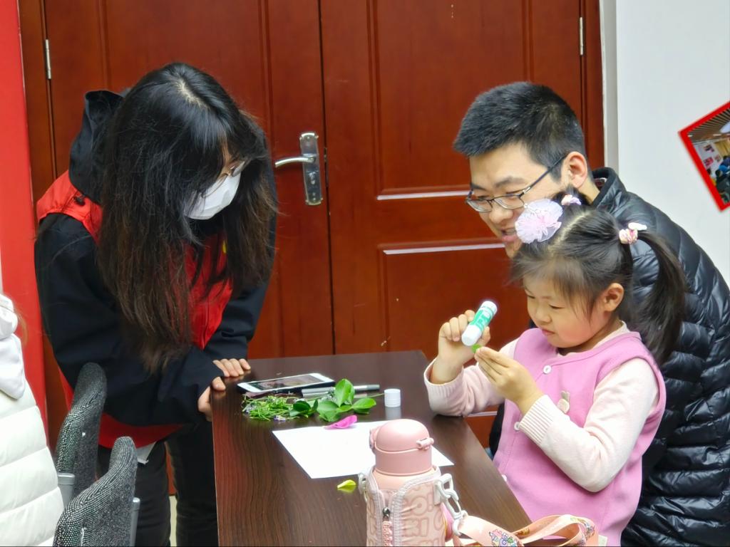 活动中,志愿者向小朋友们介绍了不同树叶的形状、春天常见的植物和描写春天的诗词,讲解了树叶粘贴画的制作过程和注意事项。随后,志愿者们分发树叶和工具,并细心协助小朋友们正确使用剪刀、胶带等制作工具,小朋友们充分发挥自己的想象力,积极地制作树叶粘贴画,将一幅幅创意新颖、构思奇特的作品展示给大家。