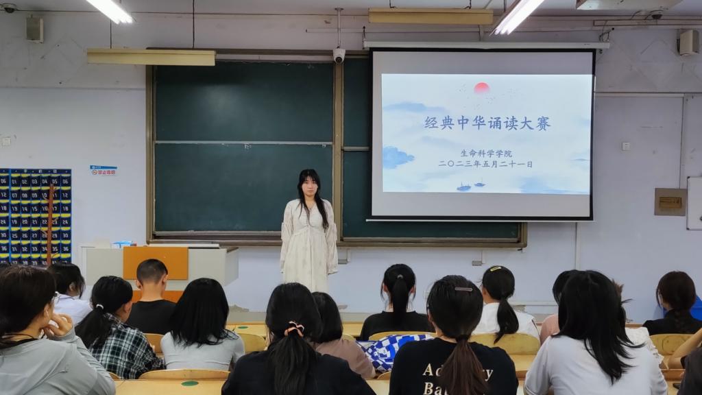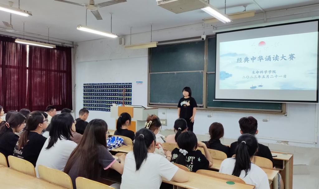 5月30日,为诠释中华优秀传统文化内涵、彰显中华语言文化魅力、弘扬中国精神,营造浓郁的校园阅读氛围,生命科学学院于求实楼0118教室举办中华经典诵吟大赛选拔赛。