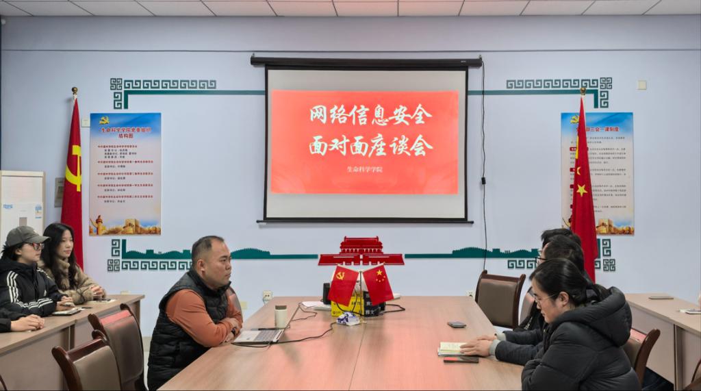 会上,许老师围绕“网络信息安全”核心主题,系统梳理了网络环境中存在的典型风险:重点剖析了虚假信息传播对社会舆论的负面影响,结合案例讲解了网络诈骗的常见手段与防范要点,并明确提出“秉持事实客观立场、理性发声、规范网络行为”的基本要求,强调“网络并非法外之地,需以负责任的态度参与网络活动”。在分享互动环节,与会老师与学生代表结合自身经历,就校内实际生活问题进行交流分享,提出了有建树的意见。